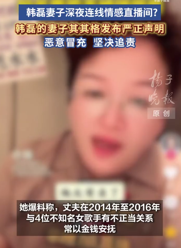韩磊的配头其其格无辜躺枪,阁下东说念主白瑞在直播间连线又名女网红,该女网红以其其格的角度爆料,隐射韩磊出轨4名女歌手,遐想为她们花了400万。