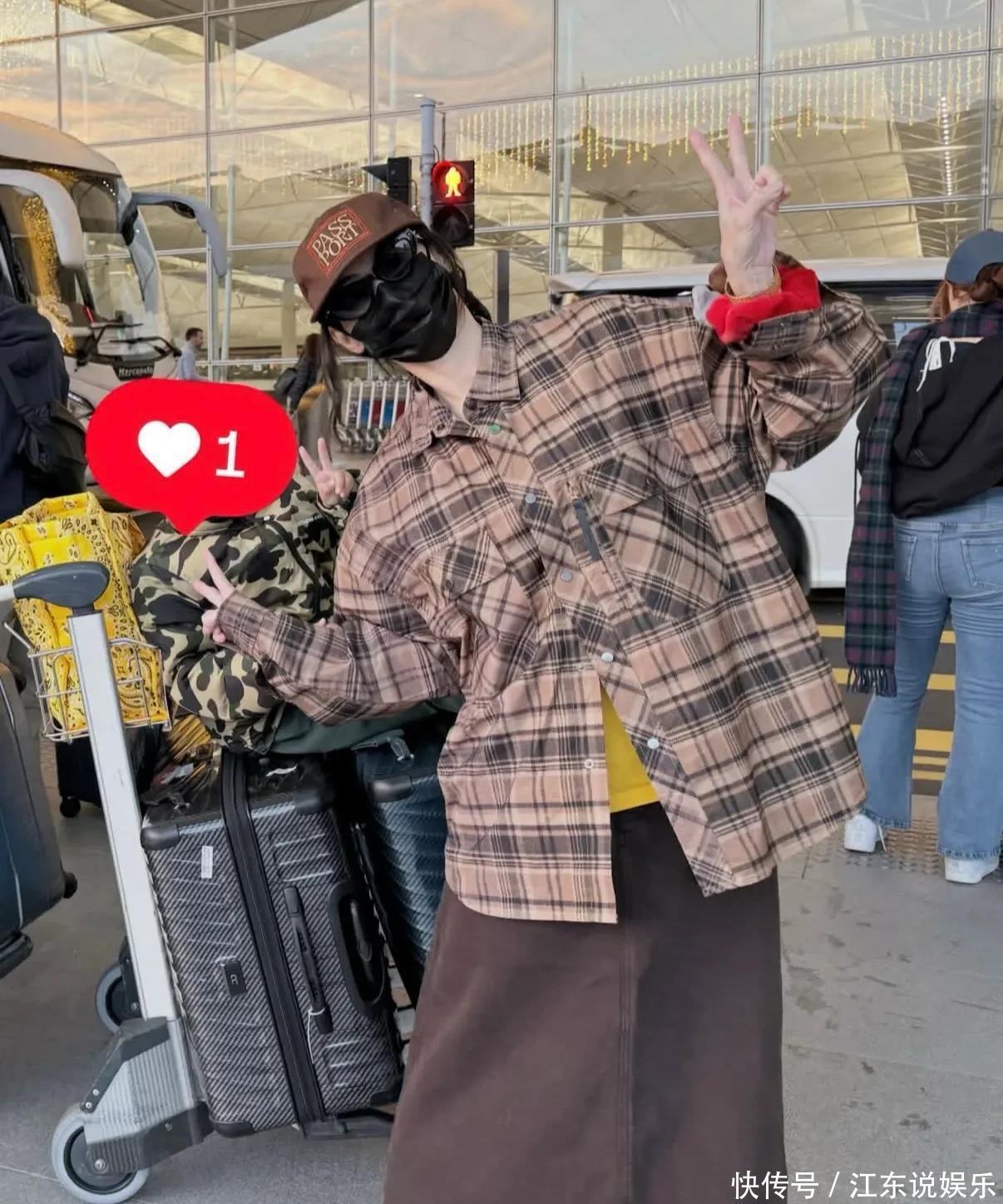 在她晒照当年,就有庆幸的网友于新加坡巧合遭逢了这对联母,况兼晒出合影 。其时张柏芝身着玄色卫衣搭配裙子,高高瘦瘦,体态态势出众 ,即使戴着口罩遮蔽了泰半张脸,也难以遮蔽明星气场 ,网友皆不禁发出惊奇“完全看不出来是三个孩子的母亲” 。游玩终了以后返程时,子母两个还在机场拍摄了合影 ,张柏芝戴着棒球帽、墨镜以及口罩全副武装 ,衣服格纹衬衫搭配棕色半裙展现文艺作风 ,Marcus換上了迷彩外衣坐在行李车上 ,随着姆妈一谈比剪刀手 ,笑颜甘好意思得藏不住 。