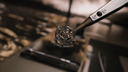 比如宇宙上最纤薄的自动上链三问报时陀飞轮手表,硬生生将极其复杂的机械结构塞进了厚度仅5毫米的机芯之中;“镇场之作”更是一枚极具科幻感的天极球型陀飞轮,三轴结构竣事了惊东谈主的98%位置障翳,而由189枚部件构成的陀飞轮,分量尽然惟有0.78克。