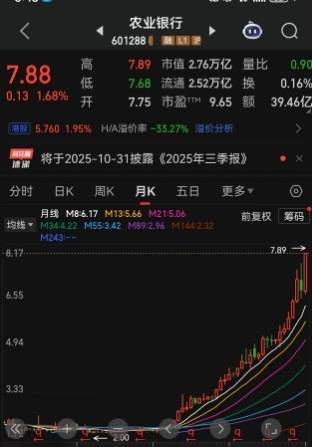 本年以来,在A股这轮牛市行情中,农业银行成为完满的定海神针。