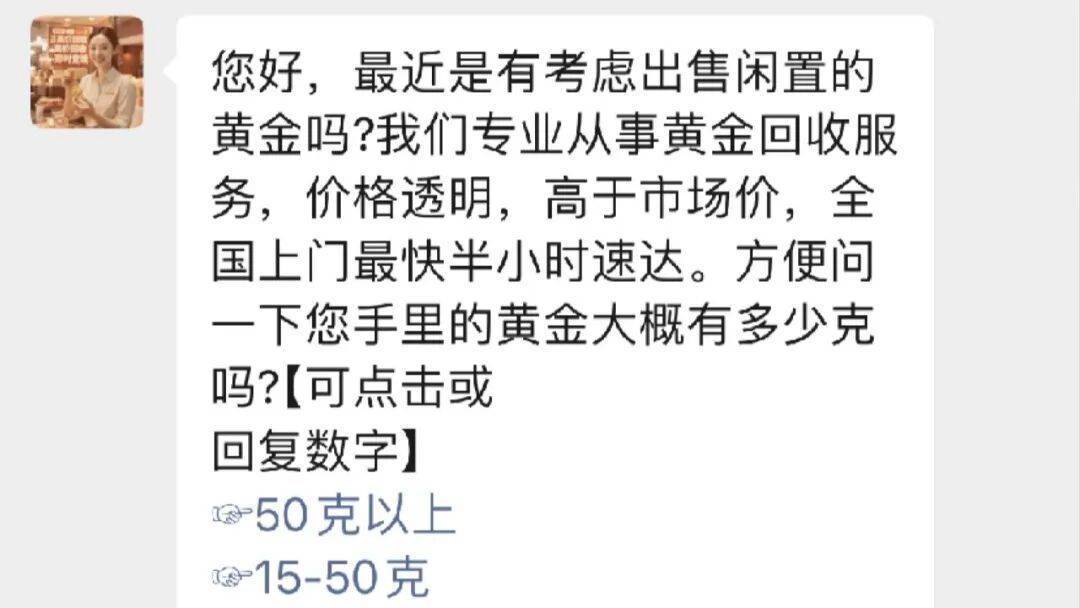 昨天上昼,黄女士刷微信小才智时,看到一条“上门回收黄金”的推送,价钱比商场价高,让她动了心。