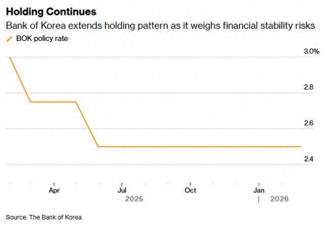 一项新引入的前瞻性指点框架表露,韩国央行委员会对六个月后基准利率的预测中值为2.5%,突显出该委员会已转向中性态度。这一排变最早在1月就已开释信号,其时韩国央行在战略声明中删除了联系可能进一步宽松的表述。